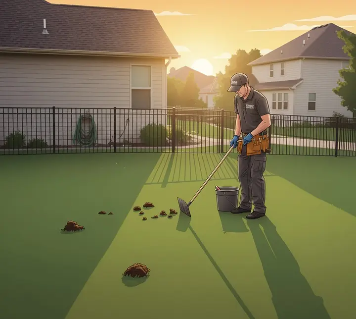 Pet waste removal is a service that picks up and disposes of pet poop in yards to leave a clean area.